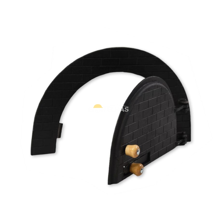Porta de forno em ferro fundido de alta durabilidade, ideal para complementar fornos rústicos e modernos, com design robusto e elegante.