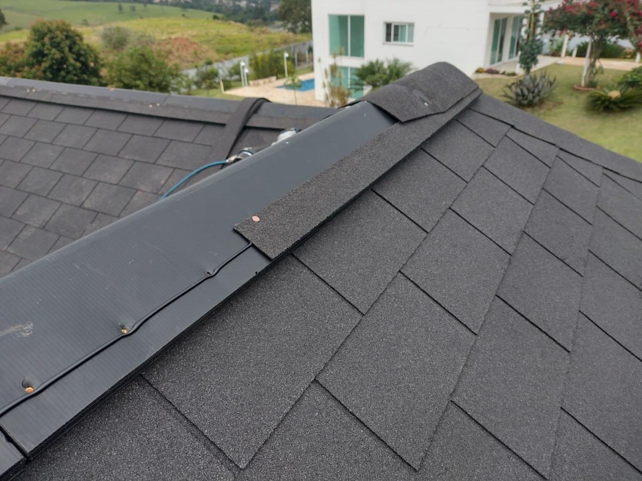 Cumeeira Ventilada Shingle, essencial para ventilação eficiente e proteção do telhado, garantindo durabilidade e conforto térmico.