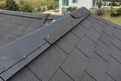 A cumeeira ventilada é um componente fundamental para o correto funcionamento do sistema de telhado shingle, sendo responsável por garantir a ventilação contínua da cobertura e o equilíbrio térmico do telhado.