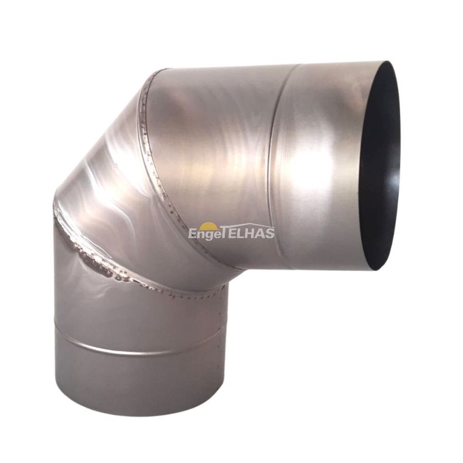 Curva 90º para Tubo de Chaminé, ideal para ajustar a direção do fluxo de fumaça em sistemas de exaustão, garantindo eficiência e flexibilidade.